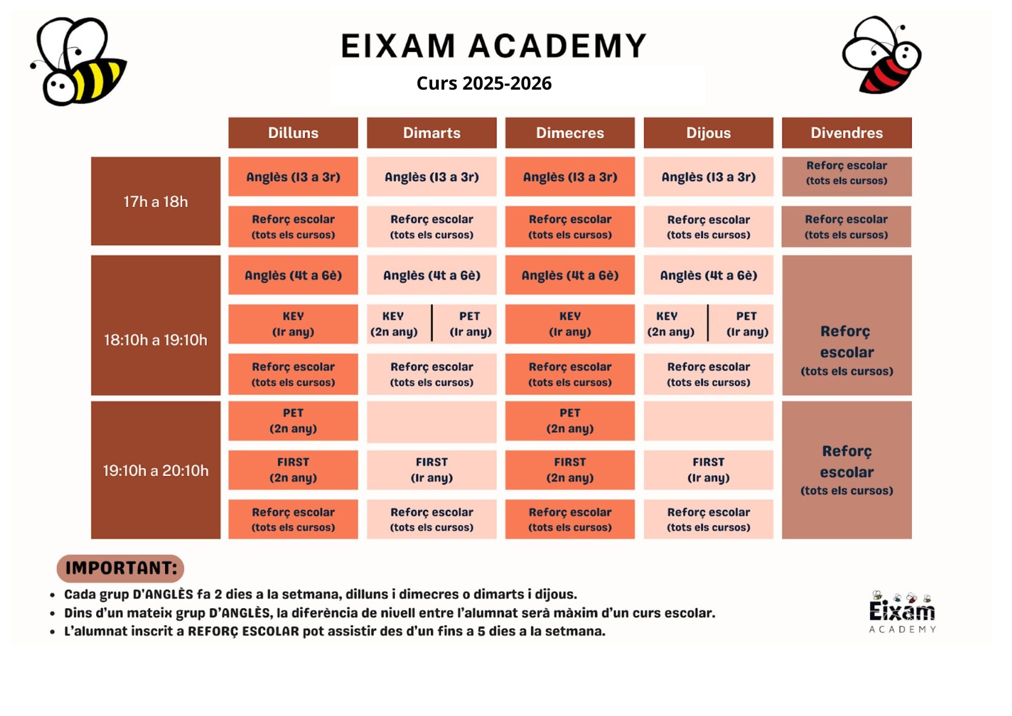 Per aconseguir els objectius que ens proposem, les classes de reforç seran amb grups reduïts per facilitar la concentració de l’alumne/a i l’atenció més personalitzada del professor/a per a cadascun dels membres del petit grup.